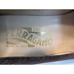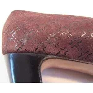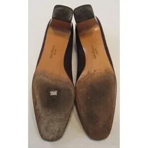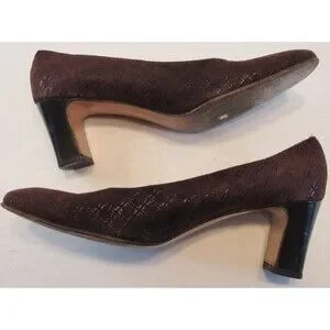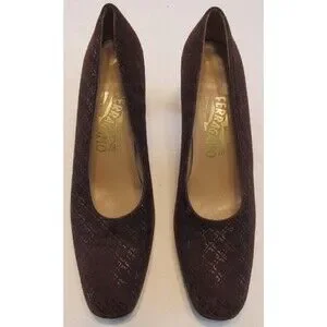 Vintage Salvatore Ferragamo Suede Embossed Patterned Pump Dark Brown Size 8.5 3A