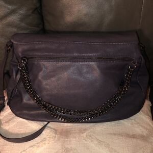 Jennifer Lopez Indigo Faux Leather Foldover Cross Body Purse Bag Chain Detail