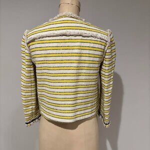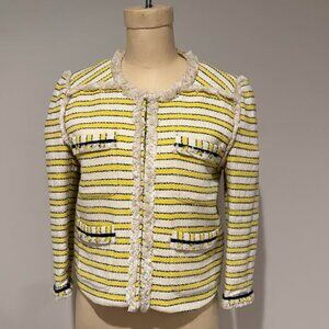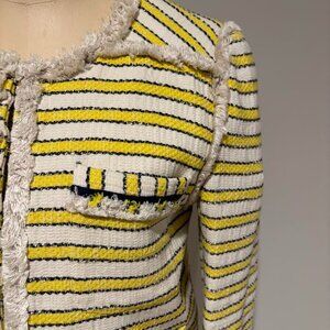 Veronica Beard yellow & blue stripe cream tweed jacket