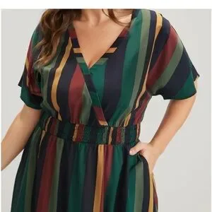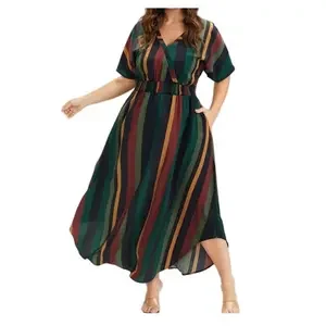 Elevate your style with this vibrant striped maxi dress. Featuring a blend of green, red, and yellow hues, this dress is perfect for the fall.