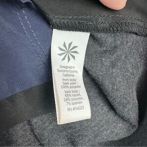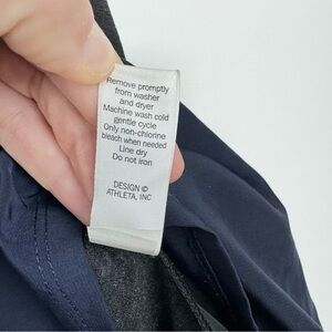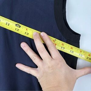 Sleek navy sleeveless top with black side panels for a flattering silhouette. Lightweight, smooth fabric offers comfortable all-day wear. Versatile style perfect for working out or casual outings. Euc.
