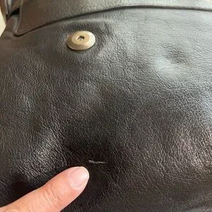 Authentic pre-loved. Black leather with gold hardwares. Hardwares has darkened with tarnishing. Tiny leather scratch as shown in photo.