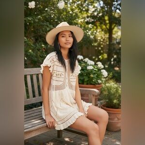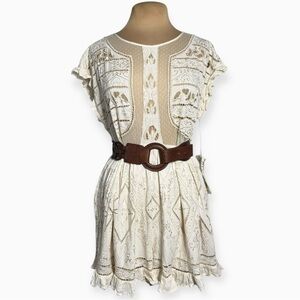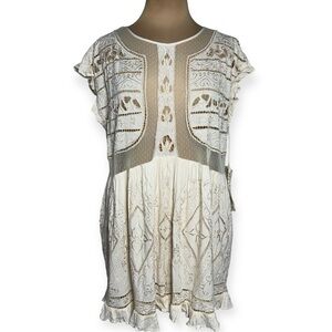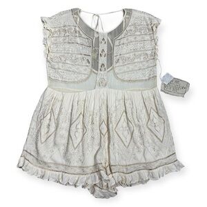 Free People Between Dreams Embroidered Romper Size Medium Antique White Cream