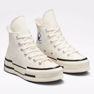 An unexpected update on an all-time classic, the Chuck 70 Plus mixes iconic features with future-forward styling. A fusion of mixed-weight canvas comes together with bold, asymmetrical lines for a statement-making look. Spliced rubber and ankle patch details keep all eyes on you, while premium cushioning helps you stay light on your feet.