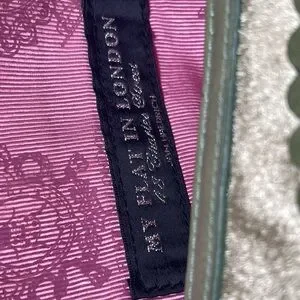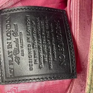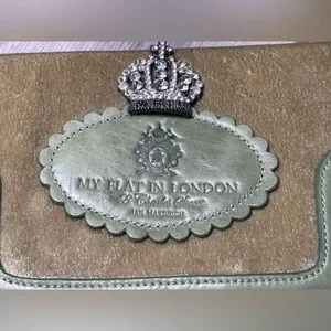 The My Flat in London Vintage Satchel Handbag in green and pink is a stylish and unique accessory for women. Made of leather with a rectangular shape, this medium-sized bag features a solid pattern with a pink handle/strap and hardware color. The exterior color is green, while the lining color is pink, creating a pop of color in the design. The bag charm adds a touch of personality, making it a perfect London-themed handbag for any fashion-forward woman.