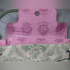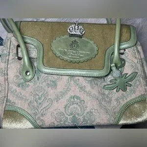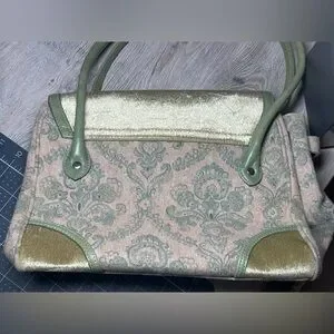 My Flat in London Vintage Satchel Handbag, Color Green/ Pink