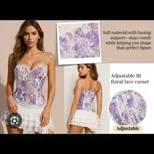 Experience elegance with this floral lace corset, featuring a beautiful blend of purple and white. Designed for comfort and style, it offers an adjustable fit to enhance your silhouette.