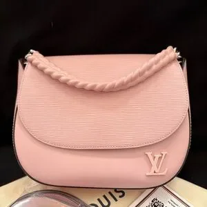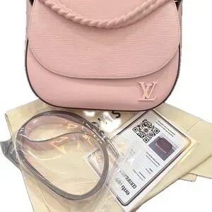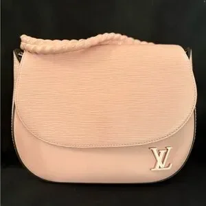 This is an authentic LOUIS VUITTON Epi Luna in Rose Ballerine. This bag is crafted of textured epi leather in pink with matching smooth leather. The hand bag features a leather wrapped silver chain top handle, a smooth leather removable leather shoulder strap, a 3D LV logo on the front, and a rear pocket. The flap opens with a magnetic snap to a brown microfiber interior with two patch pockets.