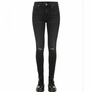 Zara Z1975 Mid Rise Skinny Jeans Black Ripped Knees 38 / 6
