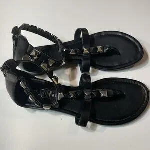 Rock & Republic Women’s Black Gladiator Thong Studded Zip Sandal Sz 9.5