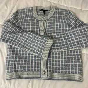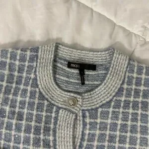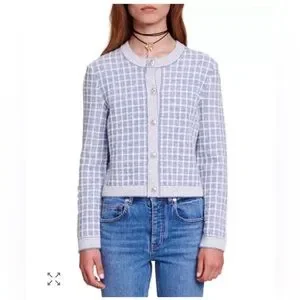 Maje Blue Checkered Sequin Malony Cardigan NWOT