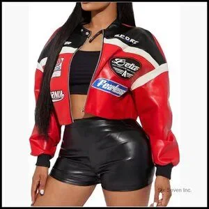 A cool, cropped jacket featuring a bold letter graphic print and color block design. The soft, lightweight fabric is comfortable for streetwear, casual occasions, music festivals, and more.