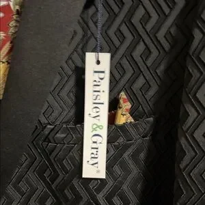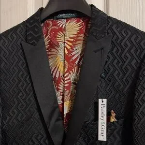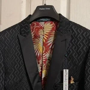 Paisley & Gray Black Textured Evening Blazer with Floral Red and Yellow Lining