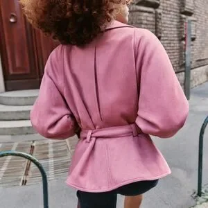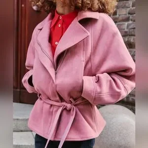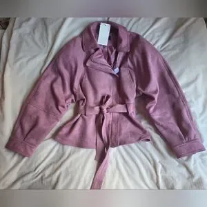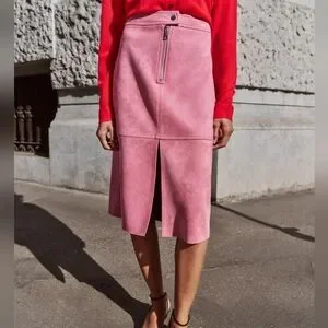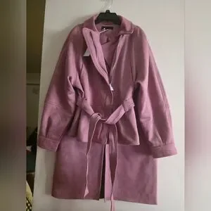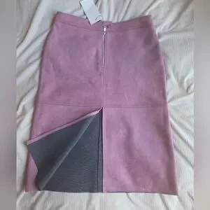 Zara Set Faux Suede Belted Jacket size L + Pencil Midi Skirt size XL Lilac BNWT