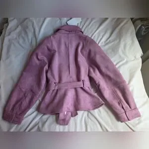 Zara Set Faux Suede Belted Jacket L+ Pencil Midi Skirt XL Lilac