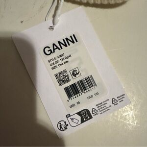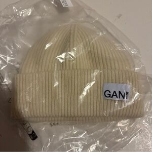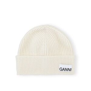 Ganni Fitted Wool Rib Knit Beanie In Egret NWT