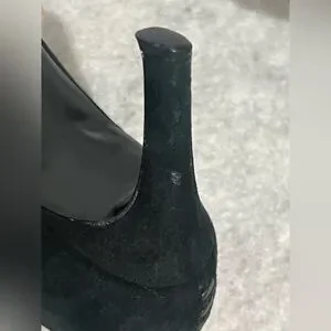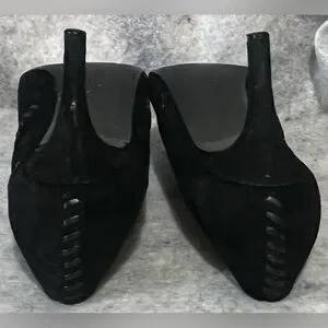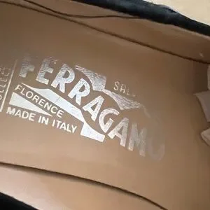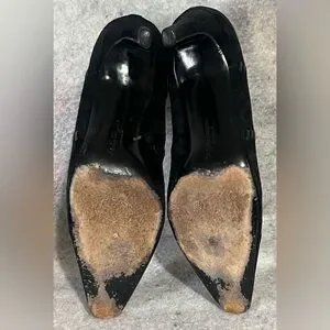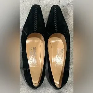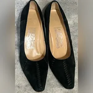 VTG*Salvatore Ferragamo Nero Suede/Leather Patchwork Pumps~7.5B~square toes