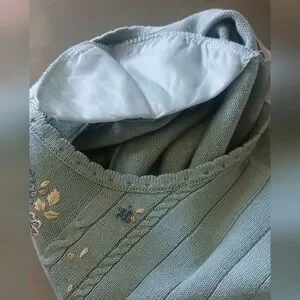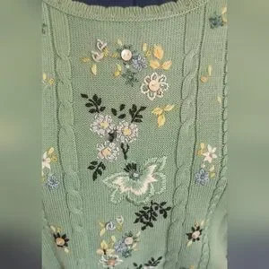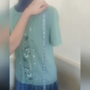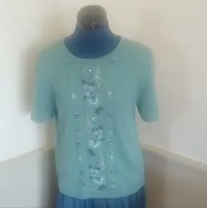 Embroidered Sea Green Short Sleeve Cotton Blend Sweater