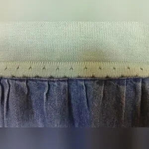 Gorgeous textured embroidery, natural fiber fabric, scalloped edging, and removable shoulder pads (pictured). Great for wearing casually with jeans or dressing up!