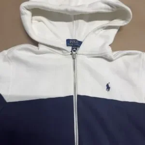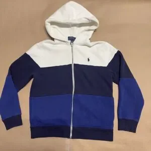 Polo Ralph Lauren Kids Boys L 14-16 Colorblock Full Zip Hoodie White Navy Blue