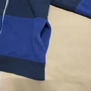 Polo Ralph Lauren zip-up hoodie in a bold tri-color block design featuring white, navy, and royal blue. This comfortable fleece-lined sweatshirt showcases the iconic embroidered pony logo on the chest and a sturdy metal zipper with branded hardware. Designed with a classic hood and split kangaroo pockets, it offers a timeless athletic look perfect for layering. The ribbed cuffs and hem ensure a secure fit for active daily wear.