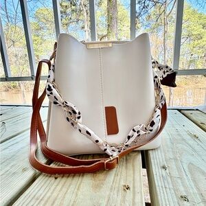 Fashionable White and Brown PU Leather Women's Shoulder Bag NWOT
