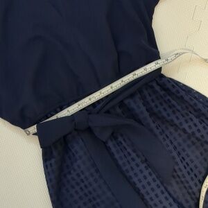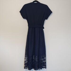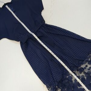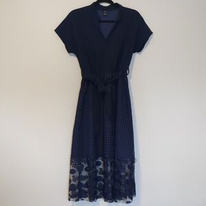 Navy Midi Dress Polka Dot Mesh Hem Detachable Belt Size M