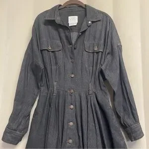 Vintage Omo Norma Kamali Women’s Dress Size 10 Dark Wash Denim Designer Luxury