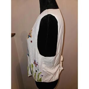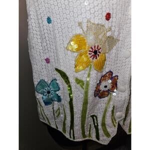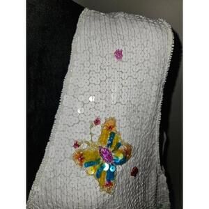 Quacker Factory Vest Flowers Butterflies White Sequin Size Medium