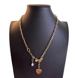 Leopard Heart Fresh Water Pearl Charm Necklace.