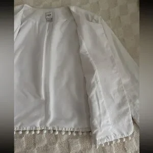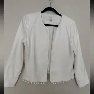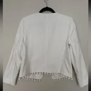 J.Crew Factory Cropped Blazer with Pom Pom Linen Cotton Blend Jacket Size M