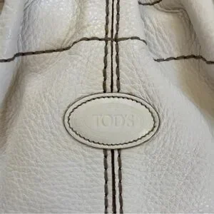 TOD'S Miky Easy Media Shoulder Handbag in White Pebbled Leather