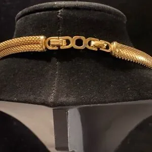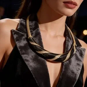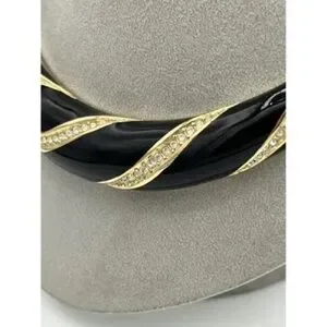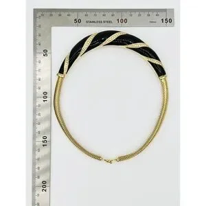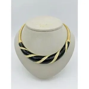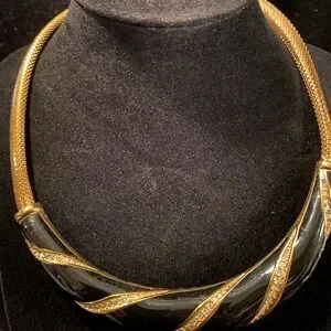 Stunning vintage Dior Tubogas necklace featuring a bold curved centerpiece with sleek black enamel and sparkling rhinestone accents.