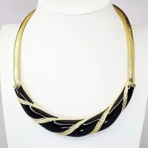 Vintage Dior Necklace Bold Black Enamel Rhinestone Designer Piece
