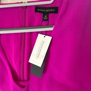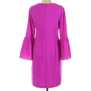 Radiate confidence in this striking magenta shift dress, designed with a flattering V-neckline and dramatic tiered flared bell sleeves that add a touch of playful elegance to every movement. The structured yet fluid silhouette offers a sophisticated fit that transitions effortlessly from day to night, ensuring you stand out with its vibrant hue and contemporary design. This brand-new piece remains in pristine condition with original tags attached, ready to make a lasting impression at your next event. Perfect for a summer wedding guest look, a sophisticated cocktail party, or a vibrant professional luncheon.