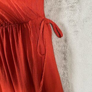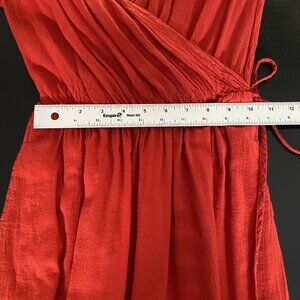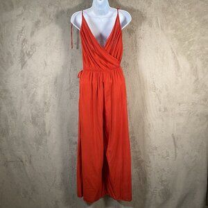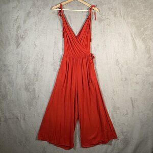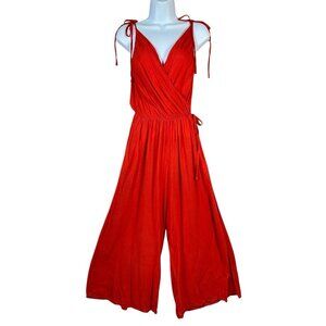 Red Wide Leg Palazzo Jumpsuit M Cotton V Neck Lightweight Summer Travel Resort