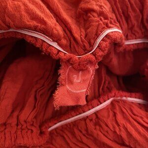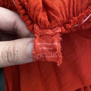 Red Cotton Wide Leg Jumpsuit with Pockets. Bought this in Thailand many years ago and probably only wore a couple times. It's lightweight and flowy, really nice for warm weather destinations. It is a "One Size", but I would say best fits Medium. Color is a true red, probably best represented in the measurement photos. Primary image was AI generated to assist with styling visualization; all other images are of the exact item for sale.