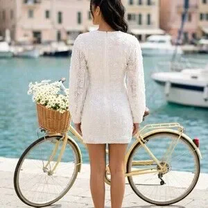 Just Me’s white floral lace mini dress is the kind of romantic piece that makes plans feel special. The wrap-front V-neck flatters up top, while the fitted, ruched skirt gives you that party-ready shape. Long sleeves and a fully lined body keep it comfortable, and the back zip makes getting ready easy. Perfect for a bridal shower, engagement, bachelorette party, date night, cocktail party, vacation, or graduation. New with tags.