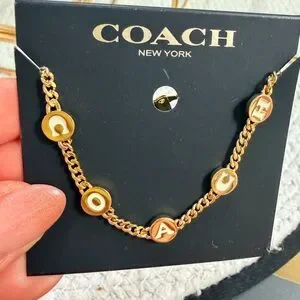 COACH Gold-Tone Chain Necklace with Enamel lettering. NWT