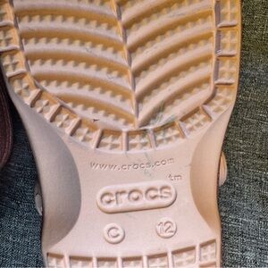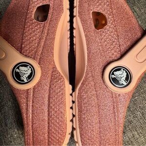 Crocs Baya Glitter Clogs in Pink Rose, Little Kids Size 12. Minor wear on bottom of soles with a blue mark on one of the soles (see pic); otherwise like new.