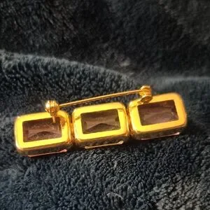 Vintage Three Glass Stone Bar Pink Clear Brooch