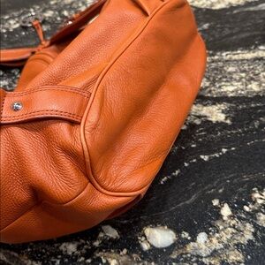 Material: Supple pebbled leather, shown here in a vibrant burnt orange or "tangerine" hue.