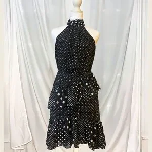 Betsey Johnson Black & White Polka Dot Halter Cocktail Dress | Semiformal Whimsy