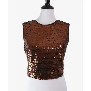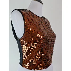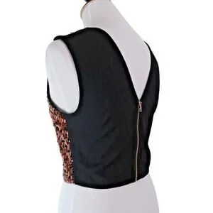 Ali & Jay Size L Disco Ball Copper Sequin Crop Top Black Zip Back
