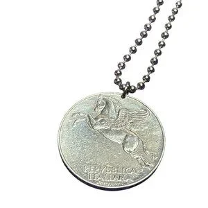 Pegasus Italian Coin Pendant Necklace 10 Lira Vintage Repubblica Italiana Lire