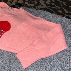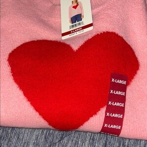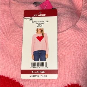 NWT Vince Camuto Heart Sweater Pink Red Graphic Pullover Women's XL