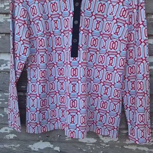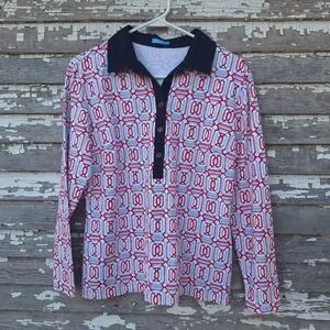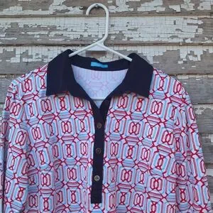 J. McLaughlin Signature Catalina Geometric Print Polo Collared Button Shirt Top