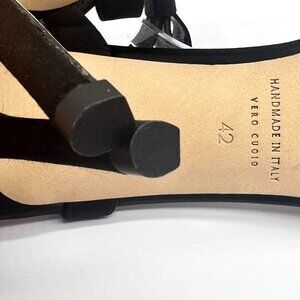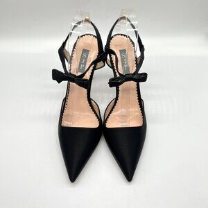 SJP by Sarah Jessica Parker women's Pola black satin pointed toe bow strap pumps. Size 42 EU, which according to Sarah Jessica Parker's size chart is equivalent to a size 12 US. Listing as both sizes but only the one pair is available.