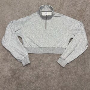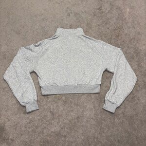 Cozy heather gray sweatshirt with a quarter-zip design. Ideal for casual wear.