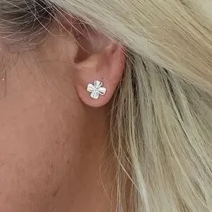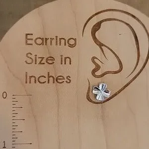 Four-petaled clover (or flower) with silver overlay for nice white luster; hypoallergenic posts.